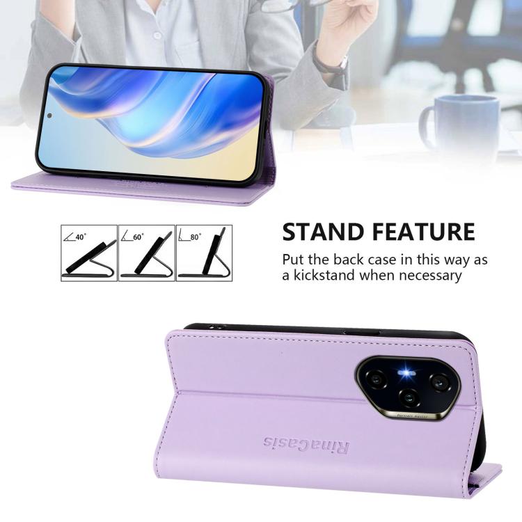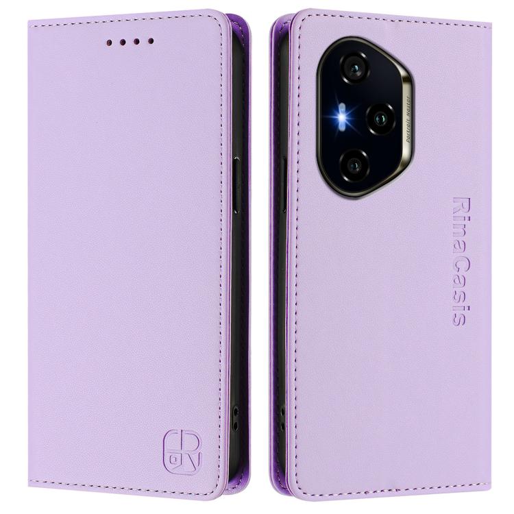 Funda de Cuero Rfid con Doble Pliegue y Succión Magnética para Honor 400 Rc01 (Morado Claro)