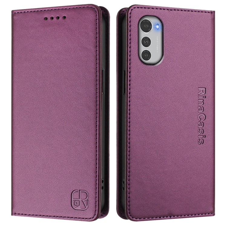 Funda de Cuero Rfid para Motorola Moto E32 Global Rc01 con Doble Pliegue y Succión Magnética (Violeta)