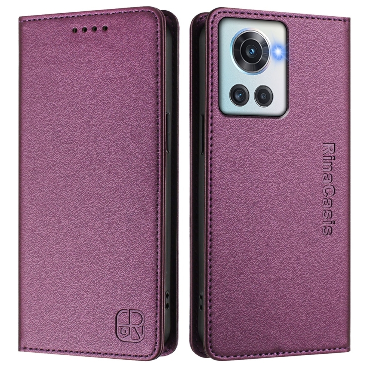 Funda de Cuero RFID con Doble Pliegue y Succión Magnética para OnePlus 10R OnePlus Ace Rc01 (Violeta)