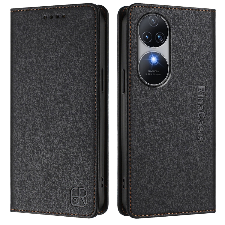 Funda de Cuero Rfid con Doble Pliegue y Succión Magnética para Oukitel C38 Rc01 (Negra)