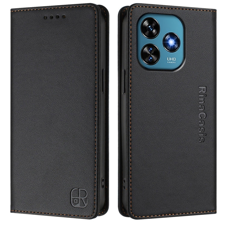 Funda de Cuero Rfid con Doble Pliegue y Succión Magnética para Oukitel C51 Rc01 (Negra)