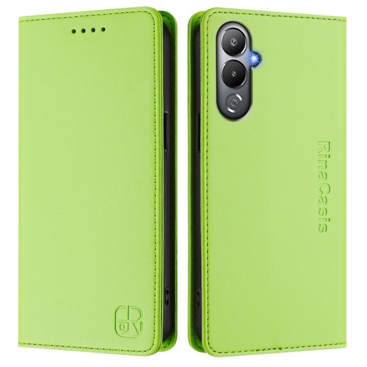 Funda de Cuero para Tecno Pova 4 Rc01 con Doble Pliegue y Succión Magnética Rfid (Verde Hierba)