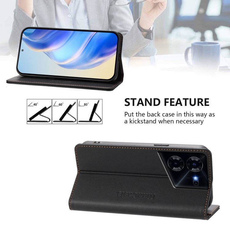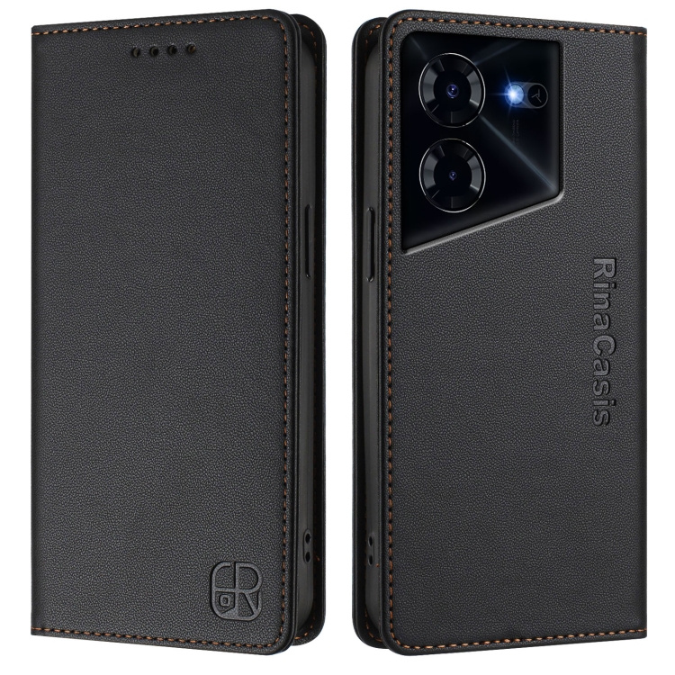 Funda de Cuero para Tecno Pova 5 Rc01 con Doble Pliegue y Succión Magnética Rfid (Negra)