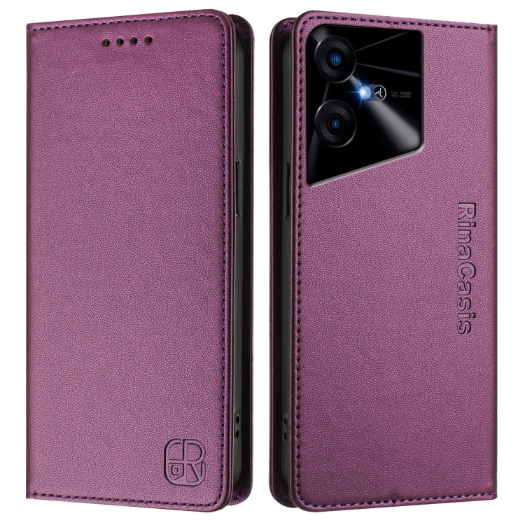 Funda de Cuero Rfid para Tecno Pova Neo 3 Rc01 con Doble Pliegue y Succión Magnética (Violeta)