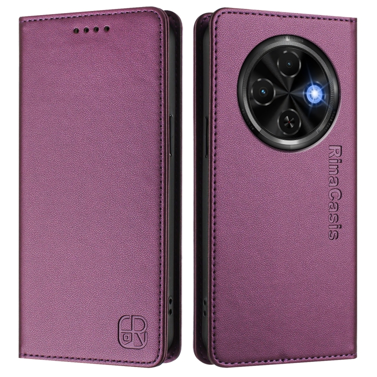 Funda de Cuero Rfid para Tecno Spark 30C Rc01 con Doble Pliegue y Succión Magnética (Violeta)