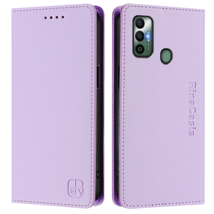 Funda de Cuero Rfid para Tecno Spark 7 / 7T Rc01 con Doble Pliegue y Succión Magnética (Morado Claro)