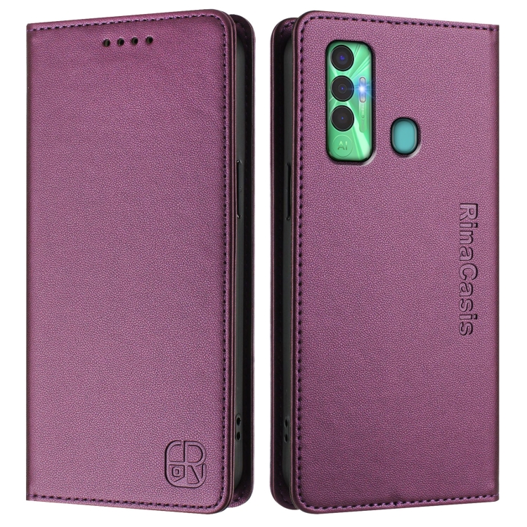 Funda de Cuero Rfid para Tecno Spark 7P Rc01 con Doble Pliegue y Succión Magnética (Violeta)