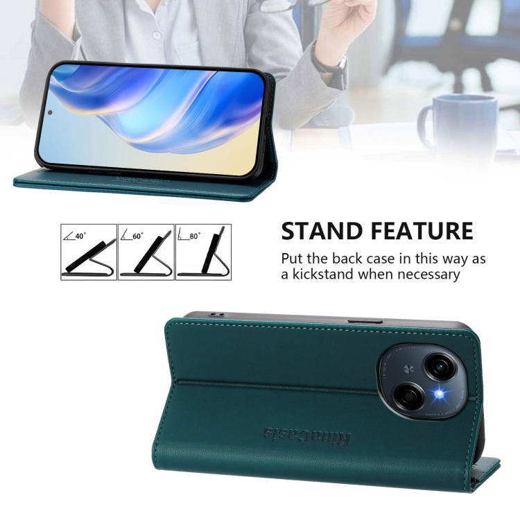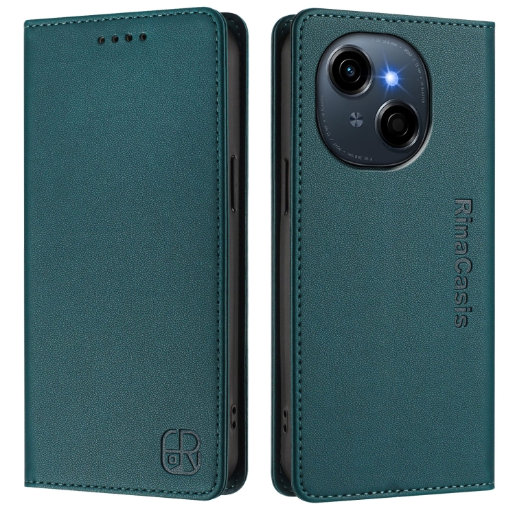 Funda de Cuero Rfid para Tecno Spark Go 1 / 2025 / Pop 9 Rc01 con Doble Pliegue y Succión Magnética (Verde Oscuro)