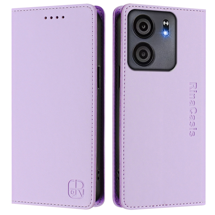 Funda Cuero RFID Blu View 5 RC01 Doble Pliegue Succión Magnética (Morado Claro)