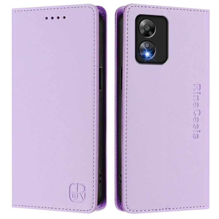 Funda de Cuero Rfid con Doble Pliegue y Succión Magnética para Boost Mobile Celero 5G Sc/Sn339D Rc01 (Morado Claro)