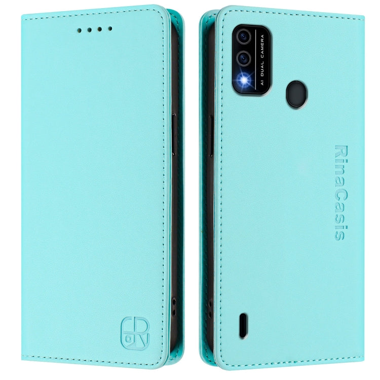 Funda de Cuero RFID con Doble Pliegue y Succión Magnética para Teléfono Itel A48 Rc01 (Verde Menta)