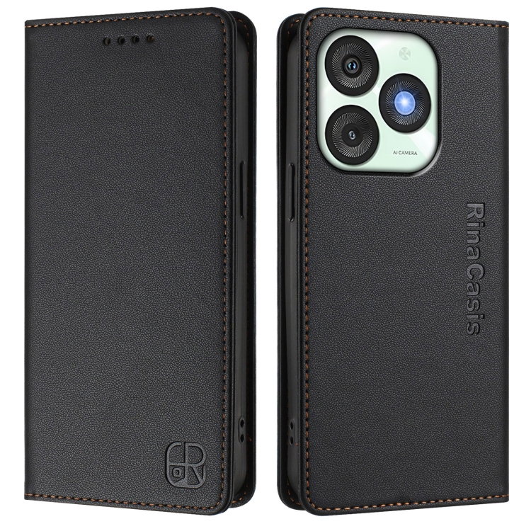 Funda de Cuero Rfid con Doble Pliegue y Succión Magnética para Teléfono Itel A50 Rc01 (Negra)