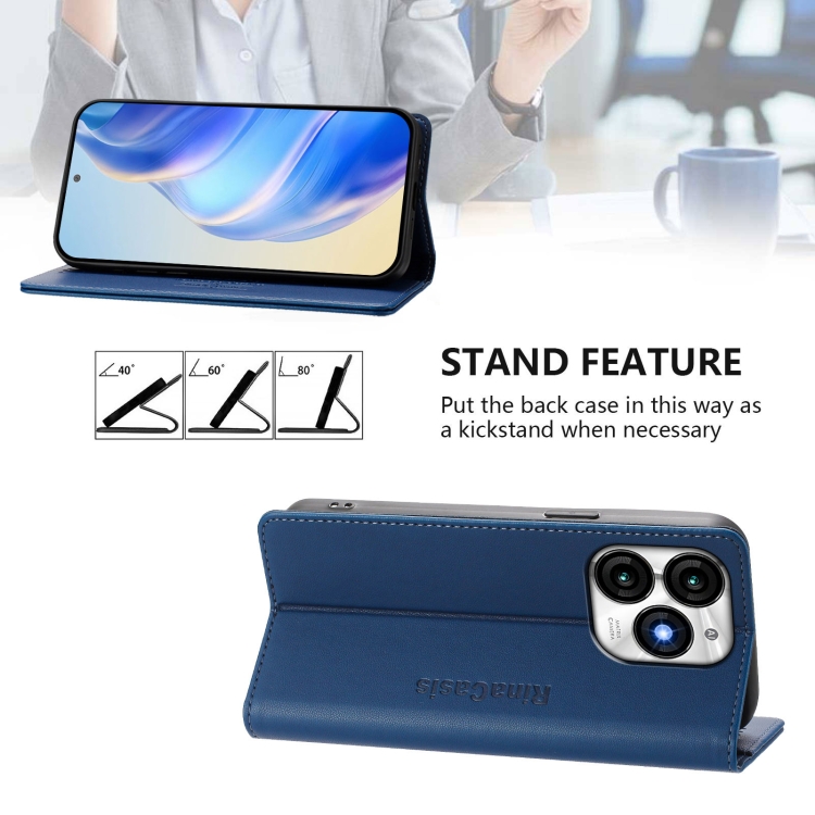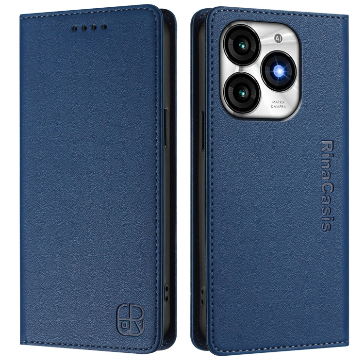 Funda de Cuero Rfid para Teléfono Itel A70 Rc01 con Doble Pliegue y Succión Magnética (Azul Oscuro)