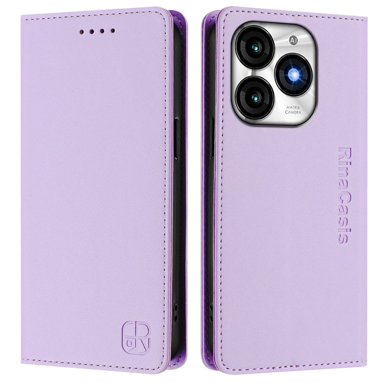 Funda de Cuero Rfid para Teléfono Itel A70 Rc01 con Doble Pliegue y Succión Magnética (Morado Claro)