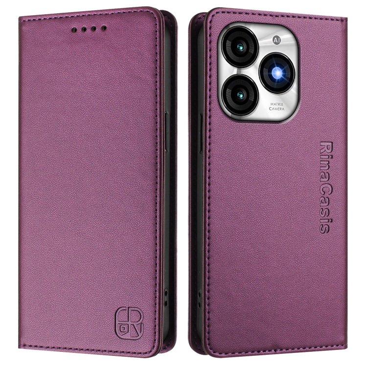 Funda de Cuero Rfid con Doble Pliegue y Succión Magnética para Teléfono Itel A70 Rc01 (Violeta)