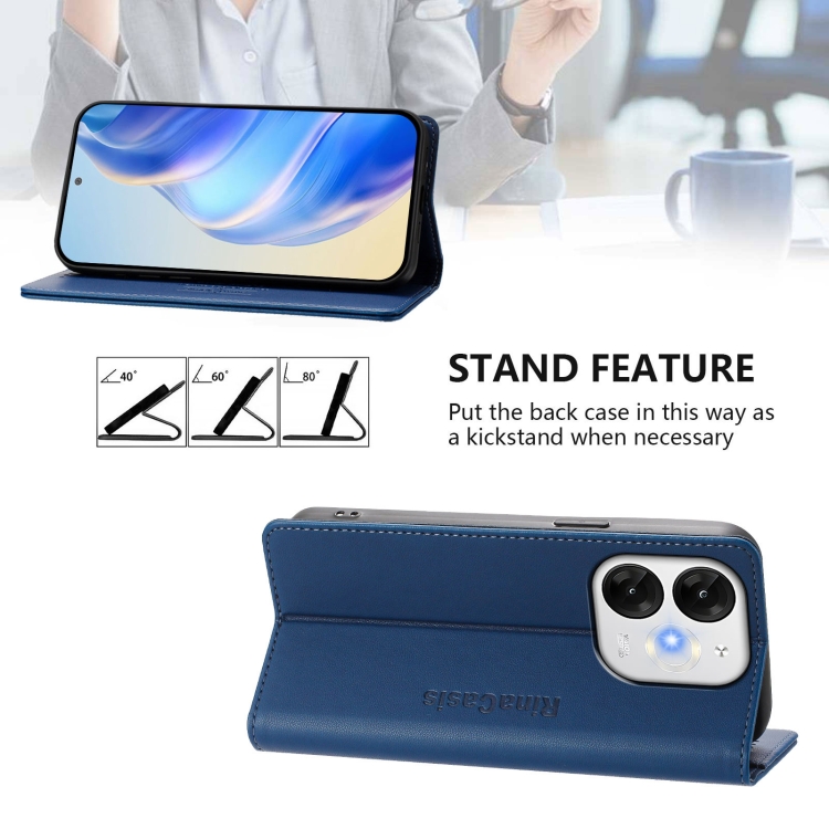 Funda de Cuero Rfid para Teléfono Itel A80 4G Rc01 con Doble Pliegue y Succión Magnética (Azul Oscuro)