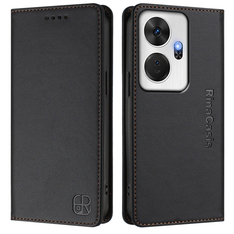 Funda de Cuero Rfid para Teléfono Itel P55+ Rc01 con Doble Pliegue y Succión Magnética (Negra)