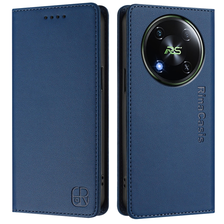 Funda de Cuero Rfid para Teléfono Itel Rs4/S666Ln Rc01 con Doble Pliegue y Succión Magnética (Azul Oscuro)