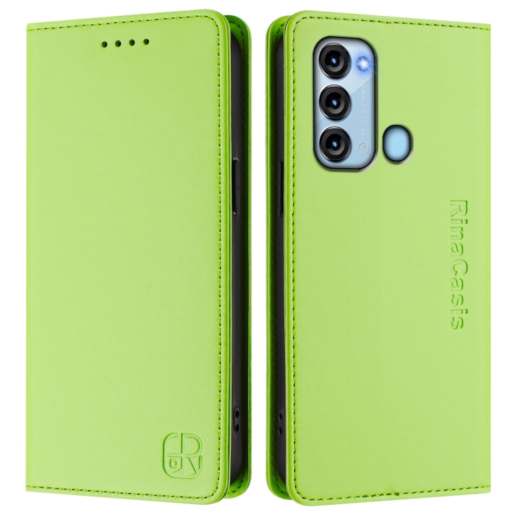 Funda de Cuero Rfid con Doble Pliegue y Succión Magnética para Itel S17/S661W/Vision 3 Rc01 (Verde)