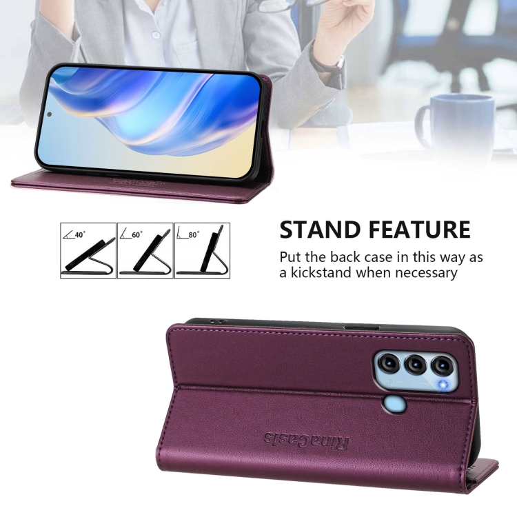 Funda de Cuero Rfid para Itel S17/S661W/Vision 3 Rc01 con Doble Pliegue y Succión Magnética (Violeta)