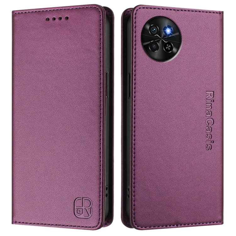 Funda de Cuero Rfid con Doble Pliegue y Succión Magnética para Itel S23/S665L Rc01 (Violeta)