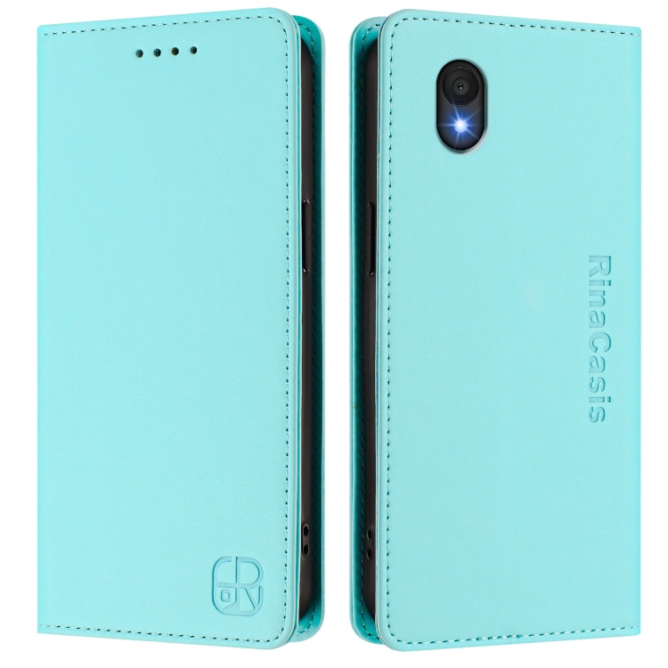 Funda de Cuero Rfid para Teléfono TCL 201 Rc01 con Doble Pliegue y Succión Magnética (Verde Menta)