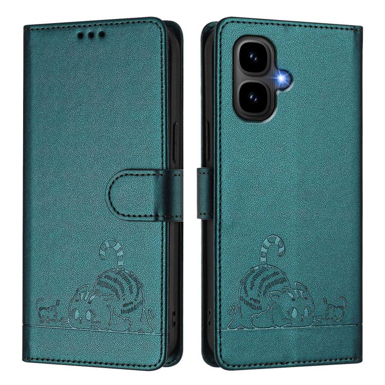 Funda de cuero RFID con estampado de gato y rata para Infinix Smart 10 4G / Tecno Pop 10 con cordón (verde pavo real)