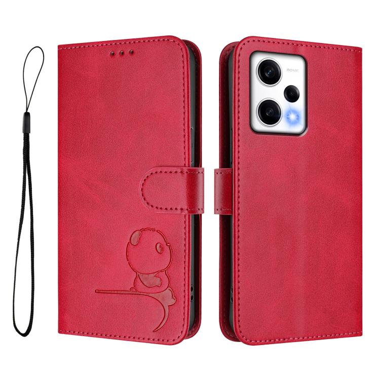 Funda de cuero RFID con estampado de panda para Redmi Note 12 Pro 5G (Global/India) con cordón (rosa)