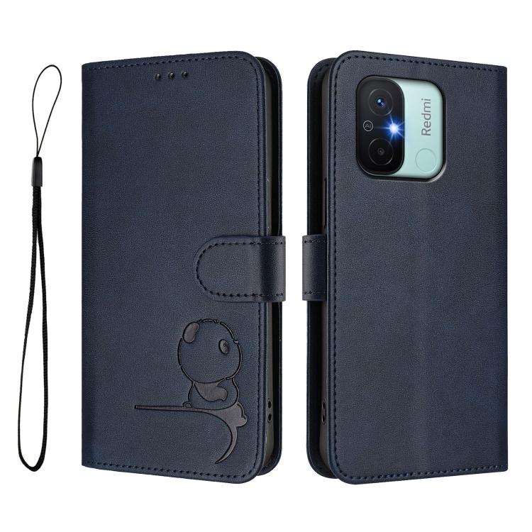 Funda de cuero RFID con estampado de panda y cordón para Redmi 11A / Xiaomi Poco C55 (azul)