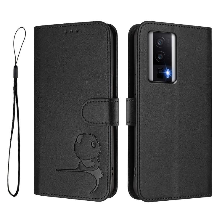 Funda de cuero RFID con estampado de panda y cordón para Redmi K60 / K60 Pro / Poco F5 Pro (negra)