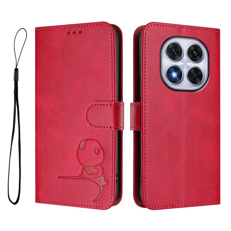 Funda de cuero RFID con estampado de panda y cordón para Redmi Note 14 Pro 4G (rosa)