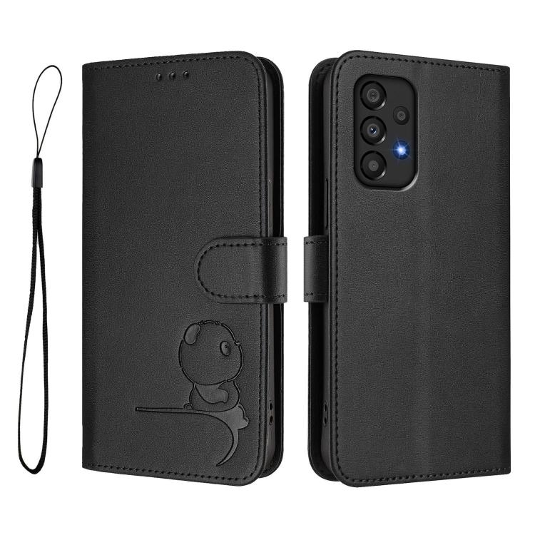 Funda de cuero RFID con estampado de panda y cordón para Samsung Galaxy A33 5G (negro)