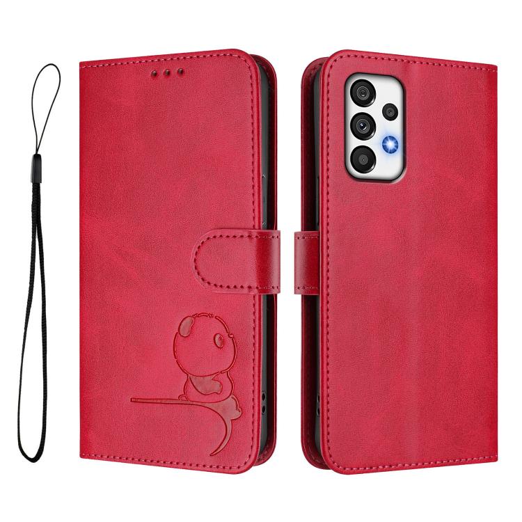 Funda de cuero RFID con estampado de panda y cordón para Samsung Galaxy A73 5G (rosa)