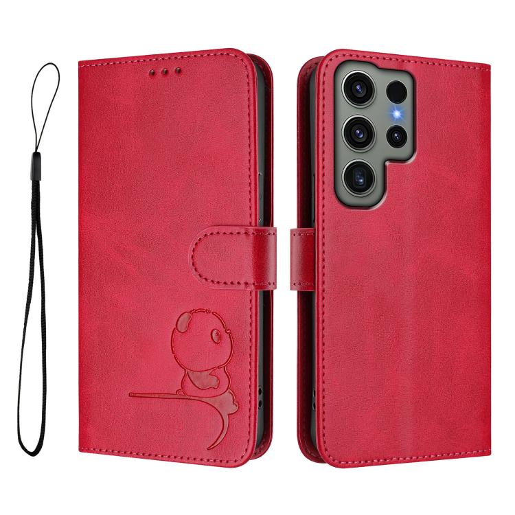 Funda de cuero RFID con estampado de panda y cordón para Samsung Galaxy S23 Ultra 5G (rosa)