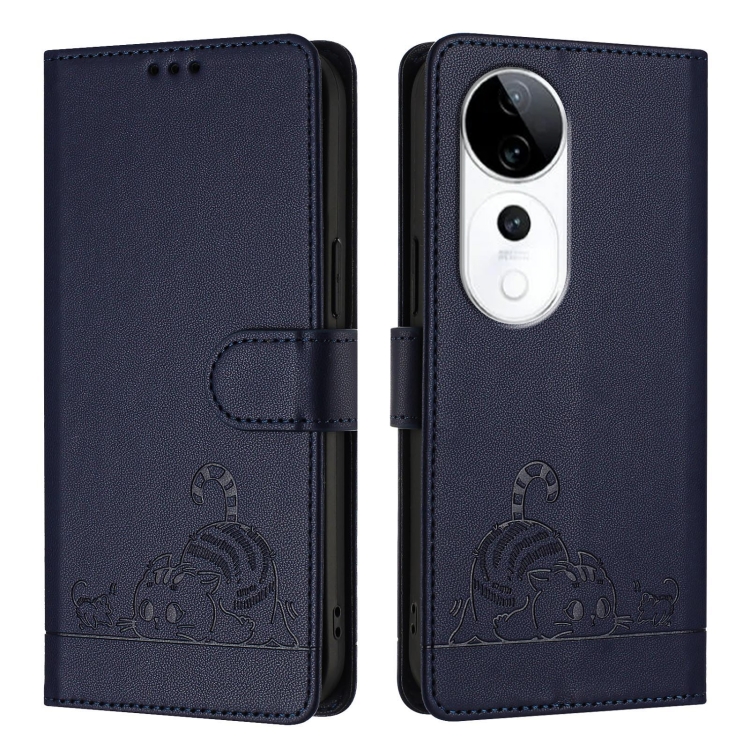 Funda de Cuero Rfid con Estampado de Rata y Gato En Relieve para Vivo S19 Pro con Cordón (Azul)