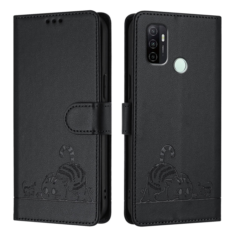 Funda de Cuero Rfid con Estampado de Rata y Gato para Oppo A11S 4G con Cordón (Negro)