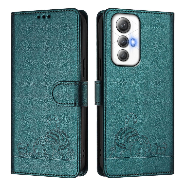 Funda Cuero Rfid Cubot Max 5 con Cordón Estampado Gato y Rata (Verde Pavo Real)