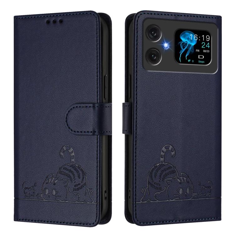 Funda de Cuero Rfid para Cubot A20 con Patrón En Relieve de Gato y Rata y Cordón (Azul)