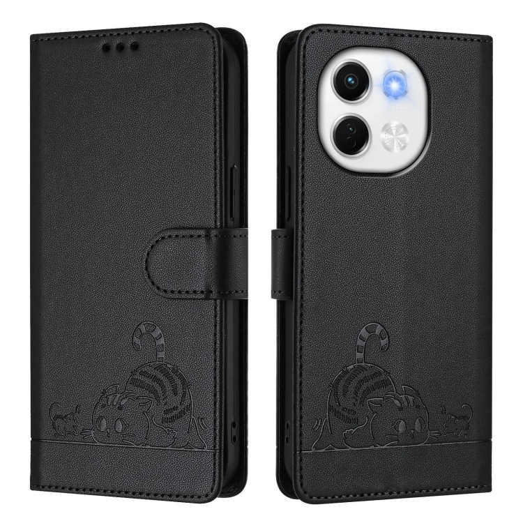 Funda Cuero Rfid Tecno Spark 30 5G con Patrón Gato y Rata con Cordón (Negro)