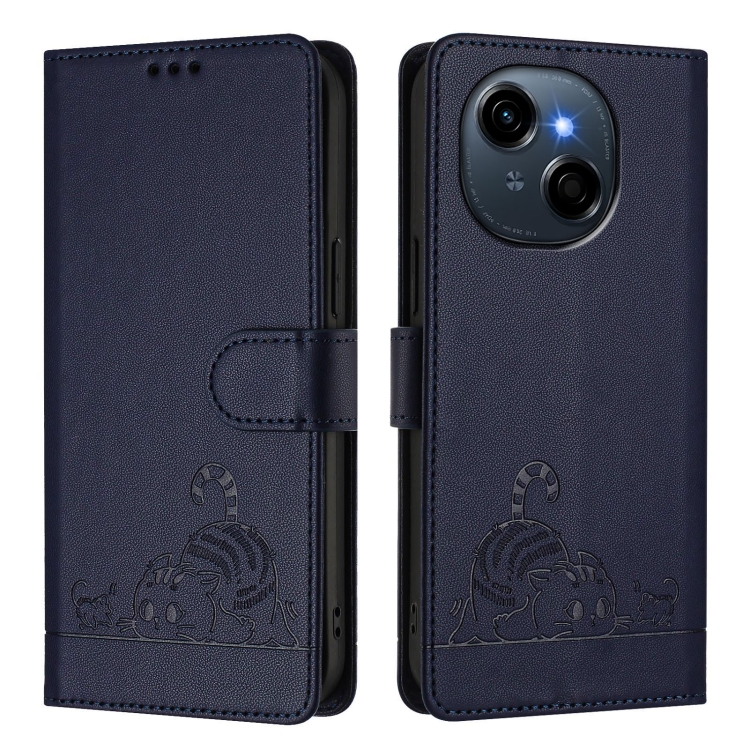 Funda de Cuero Rfid para Tecno Spark Go 1 con Patrón Rata y Gato y Cordón (Azul)