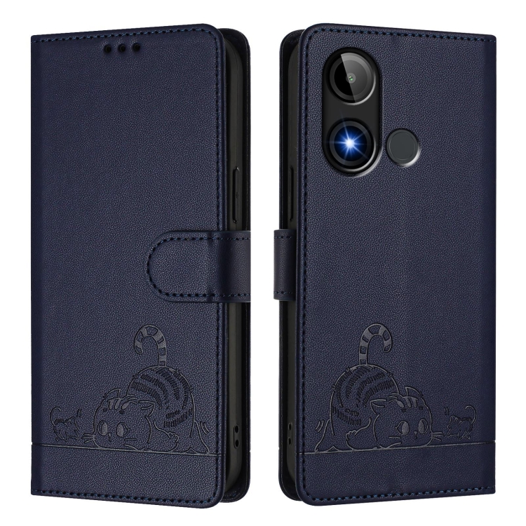 Funda Cuero RFID Blu C9 con Relieve Gato y Rata y Cordón (Azul)