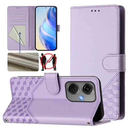 Funda de Cuero Rfid con Relieve Panal de Abeja para OnePlus Nord Ce3 5G (Morado Claro)