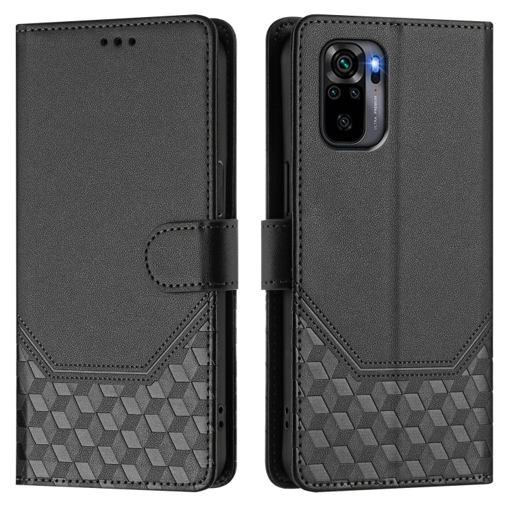 Funda de Cuero Rfid con Relieve de Panal de Abeja para Redmi Note 10 4G / 10S 4G / 11 Se (Negra)