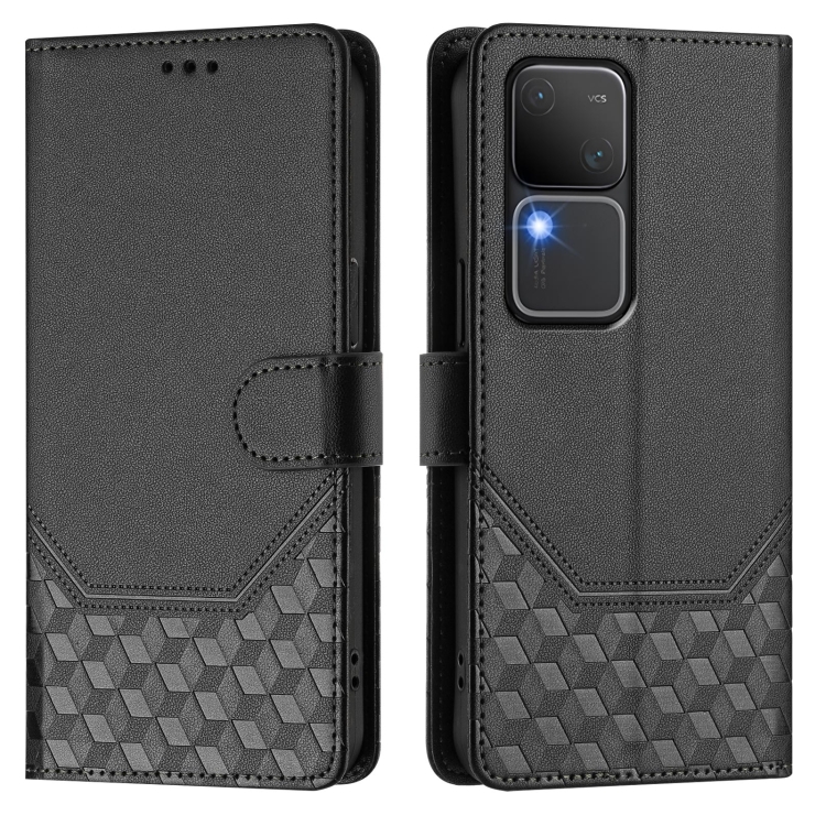 Funda de Cuero Rfid con Relieve de Panal Global para Vivo V30 5G/V30 Pro (Negra)