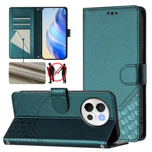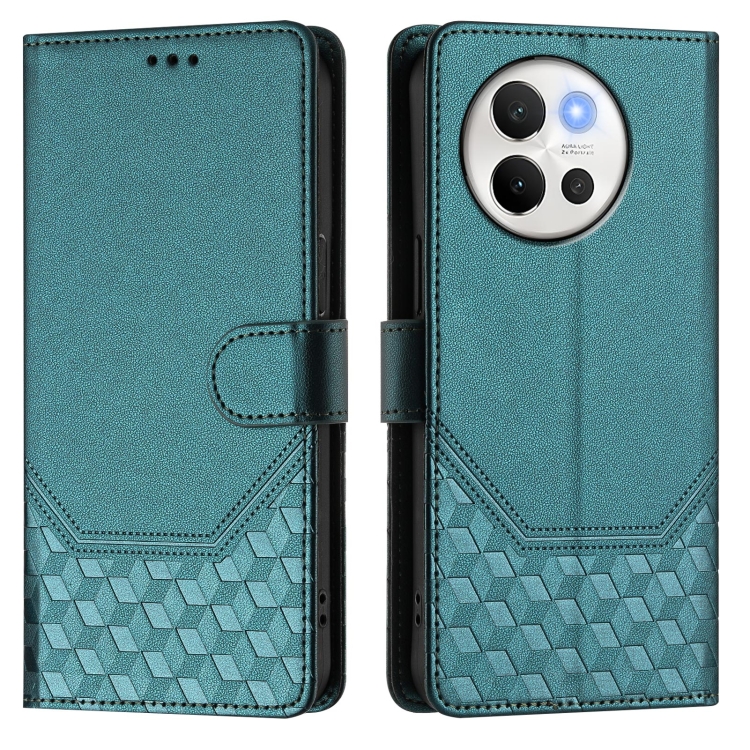 Funda de Cuero Rfid con Relieve de Panal Global para Vivo V40 Lite 5G/V30E 5G (Verde Pavo Real)