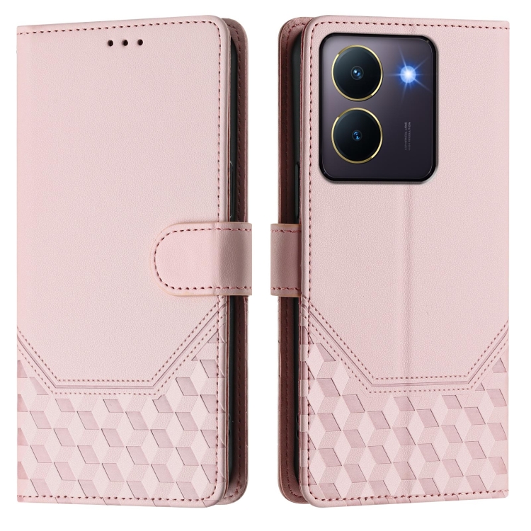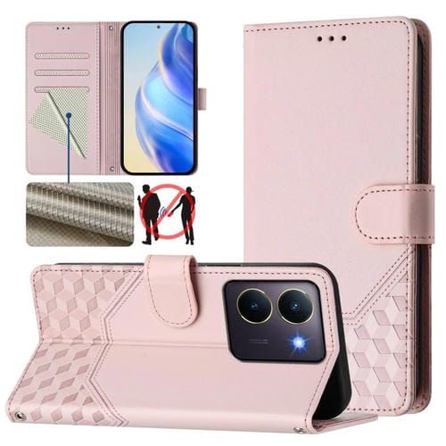 Funda de Cuero Rfid con Relieve de Panal Global para Vivo Y36 5G/4G/Y27S 4G (Rosa)
