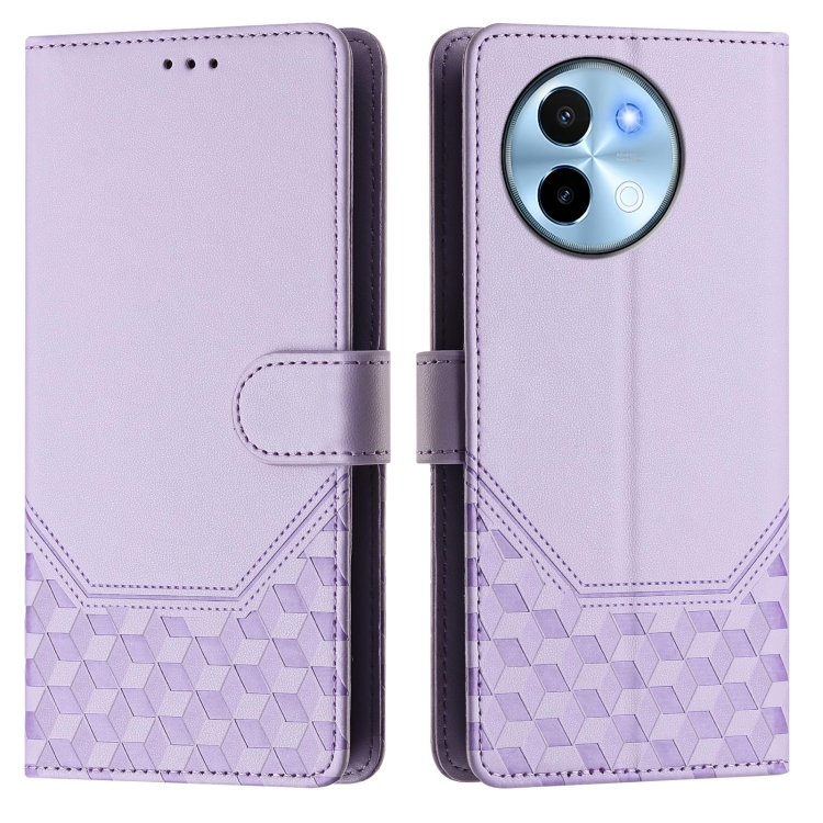 Funda de Cuero Rfid con Relieve de Panal Global para Vivo Y38 5G / Y200I / T3X (Morado Claro)