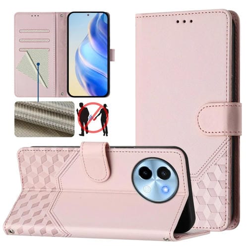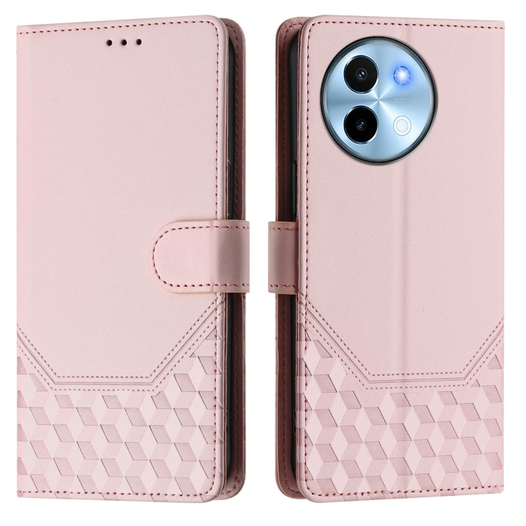Funda de Cuero Rfid con Relieve de Panal Global para Vivo Y38 5G / Y200I / T3X (Rosa)