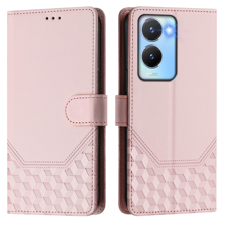 Funda de Cuero Rfid con Relieve de Panal Global para Vivo Y56 5G / Y16 4G / Y02S 4G (Rosa)