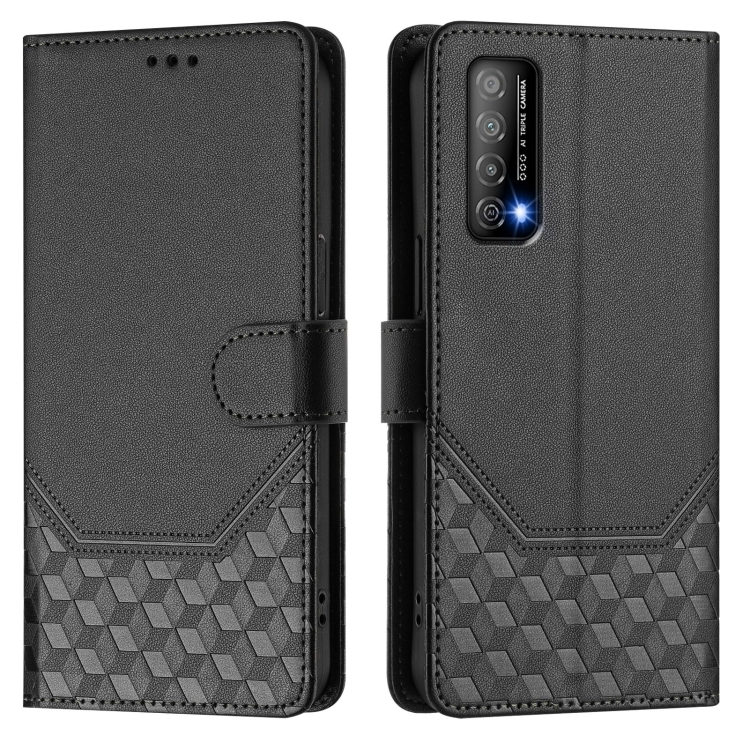 Funda de Cuero Rfid con Relieve de Panal para Huawei Enjoy 20 Se/P Smart (2021) (Negra)